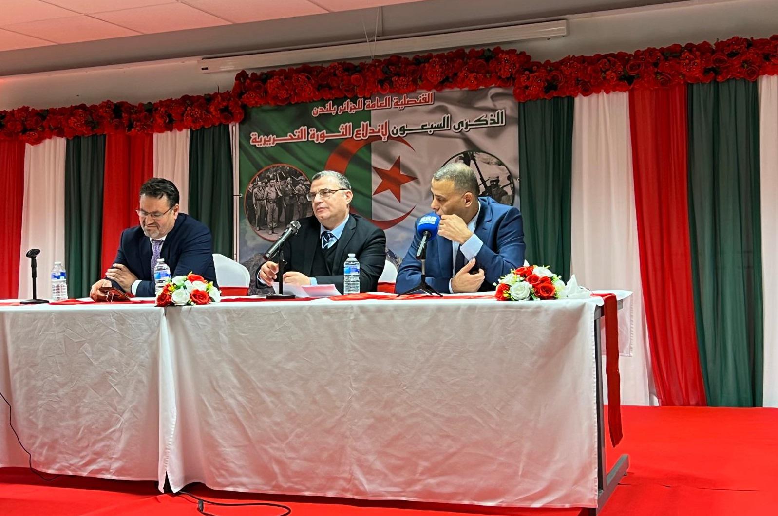 في إطار البرنامج المسطر للاحتفاء بالذكرى السبعين (70) لاندلاع ثورة اول نوفمبر 1954، نظمت القنصلية العامة للجزائر بلندن، يوم 9 نوفمبر 2024 لقاء بالتعاون مع نشطاء من أفراد الجالية الجزائرية حضره عدد كبير من أبناء الجالية، من مختلف الاعمار والفئات.