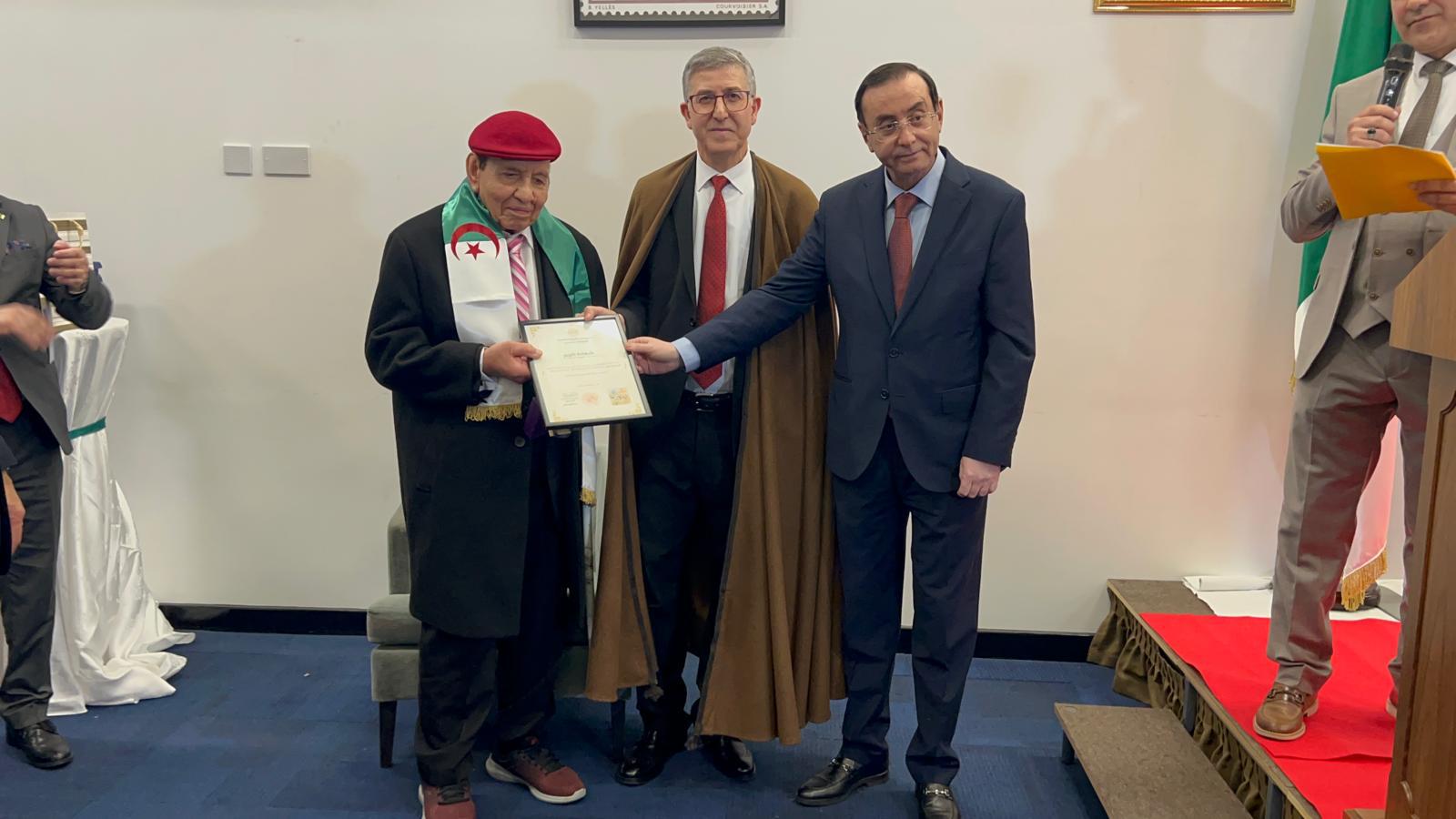 تخلل الحفل تكريم المجاهد محمد فريد، الذي كان إلى جانب الشهيد زيغود يوسف، وكذا تسليم دروع لمجموعة من المدارس الجزائرية بالمملكة المتحدة التي تقوم بتعليم اللغة العربية والتاريخ الجزائري لابناء الجالية.