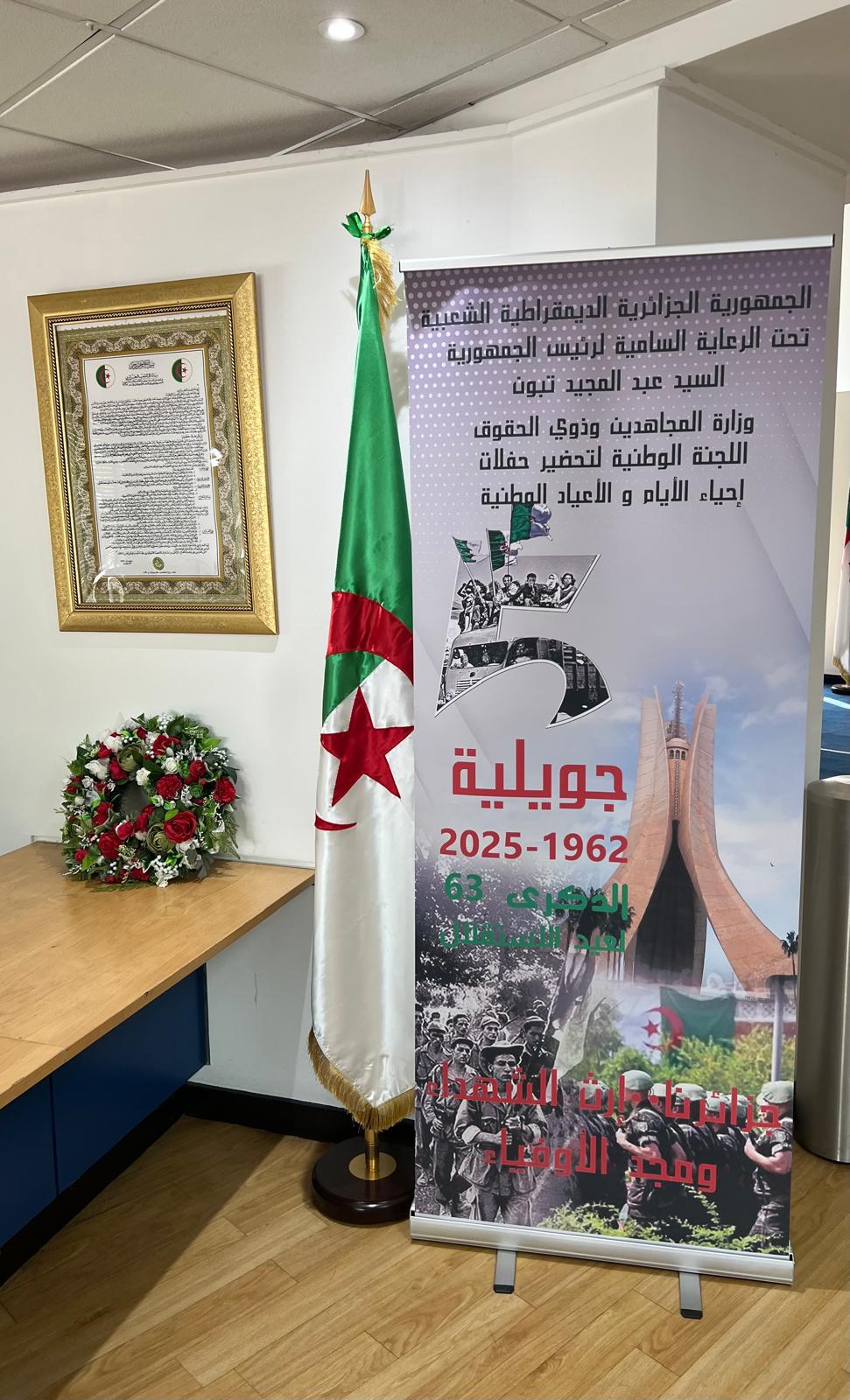 بمناسبة الذكرى الثالثة والستين لعيد الاستقلال، نظّمت القنصلية العامة للجزائر بلندن حفلاً يوم 12 جويلية 2025 بحضور مميز لأفراد الجالية من مختلف أنحاء المملكة المتحدة.