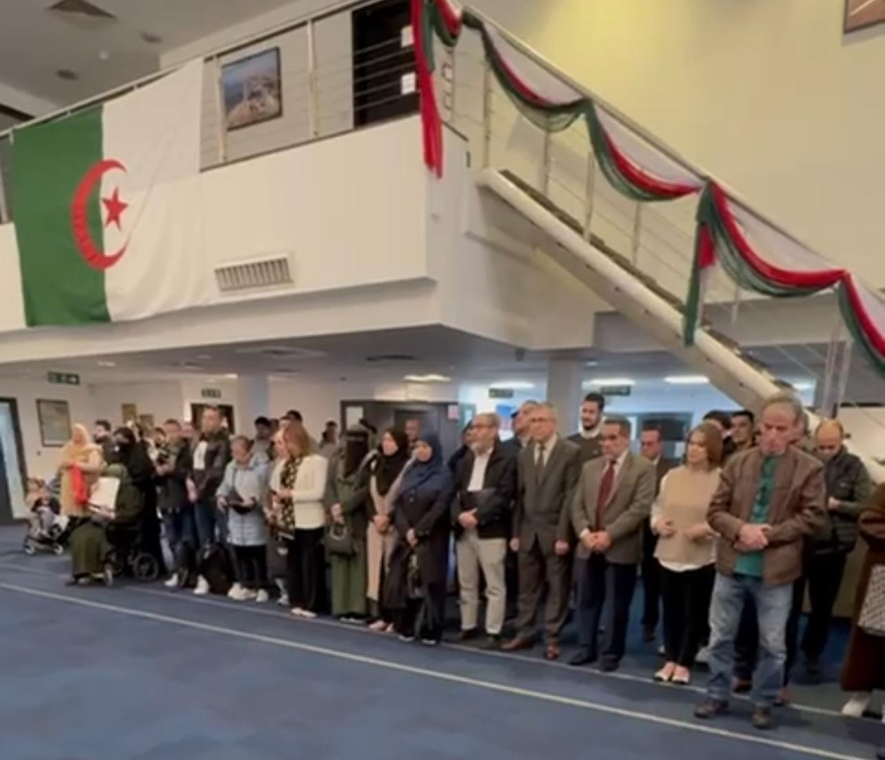 واختُتمت الوقفة بتوجيه تحية تقدير لأفراد الجالية الجزائرية في المملكة المتحدة لما يتحلون به من روح وطنية ويقدمونه من صورة مشرّفة عن الجزائر.